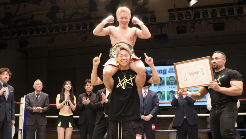晃貴がビッグバン新王者に!先輩・武尊が肩車して祝福(C)Bigbang