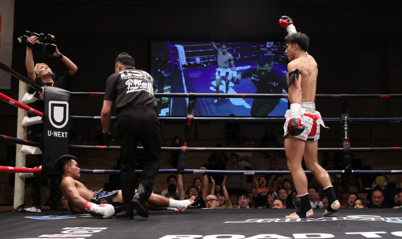 石井(右)は計4回のダウンを奪いKO勝利を奪った