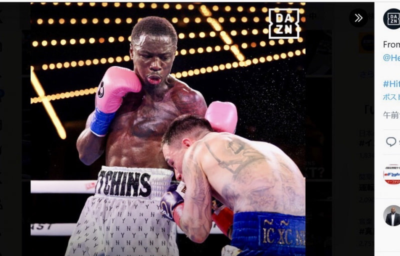 強烈ボディでスロー映像のように倒れる @matchroomboxing