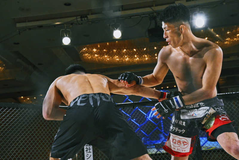 岡田達磨(左)から判定勝ちした大搗汰晟(右)