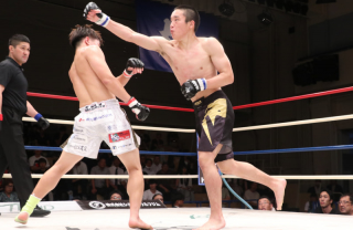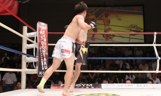 2R、このラウンドは橋本の蹴りが有効となる。左ミドルキックを次々と決めて、水本のパンチの距離にさせない。そして橋本が左フックを入れてダウンを奪った。水本が立ち上がったところでラウンド終了。