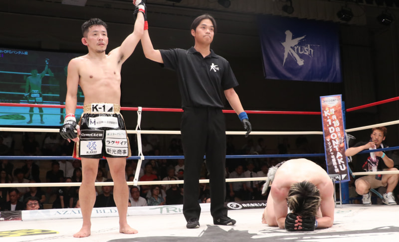悠斗(左)が心直からダウンを奪い判定勝利