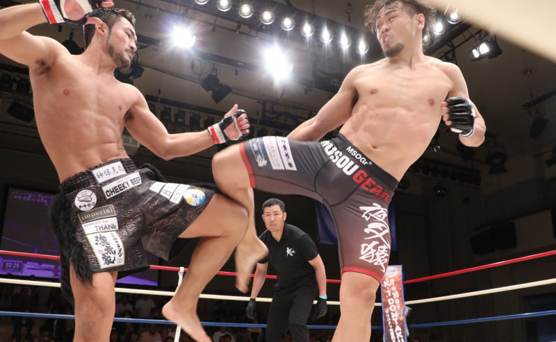 夜叉猿(右)は蹴りからパンチへつなげる動きを見せた
