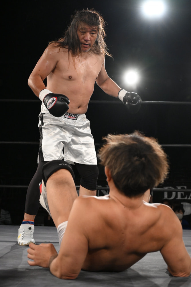 内田は一発で試合を終われる6オンスの薄手のグローブを着用