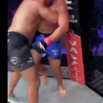 強烈なヒザ蹴りが金的にヒット@pfl