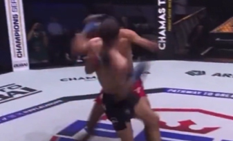 オリベイラ(手前)の回転ヒジが直撃(@PFLMMA)