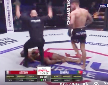 オリベイラ(右)が失神KO勝利を収めた(@PFLMMA)