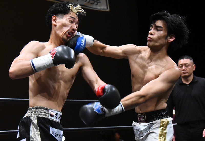 急遽出場も関龍之亮(左)からTKO勝ちした脩真(右)