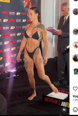 【フォト&動画】豪打爆発でKO!ビキニ姿の“割れた腹筋”、ボディペイント計量も