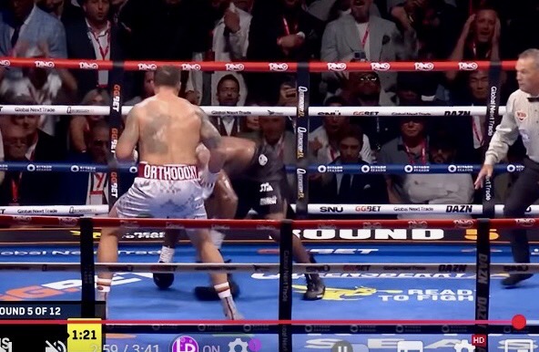 崩れるデュボア(DAZN Boxing YouTubeより)