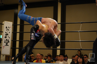 3R、ガードを固めて前に出る内藤に、川上はパンチを上下に散らして揺さぶっていく。内藤は巻き返しを狙って追いかけるが、川上は闘牛士のように攻撃をさばいて決定打を許さない。大差を付けて判定で勝利した川上はマイクを握ると「内藤選手は今日の試合に懸けてきているのが伝わってきたので、いつもより緊張感を持って練習ができたので内藤選手ありがとうございました。いつも応援に来てくれる友達、ジムの皆さん、ありがとうございます。東京からも来てくれているのでマジで感謝しています。本当は倒して勝たないといけないと思いますが、フルマークで勝ちました。11月のS-cup世界トーナメントは8人制で1日3試合ありますが、優勝してマジで人生を変えるので、応援に来て下さい」とアピールした。