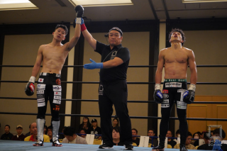 3R、一気に勝負に出る濱田がパンチのラッシュを仕掛けると、啓人はフロントチョークでキャッチポイントを奪う。脱出した濱田は巻き返しを狙ってガンガン前に出ると、啓人は左ジャブで距離を取って追い上げを許さない。残り10秒のところでも、啓人がフロントチョークでキャッチポイントを奪う。判定で啓人が勝利した。