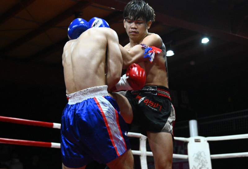 武神(左)をヒザ蹴りでKOしたヌアシラー(右)