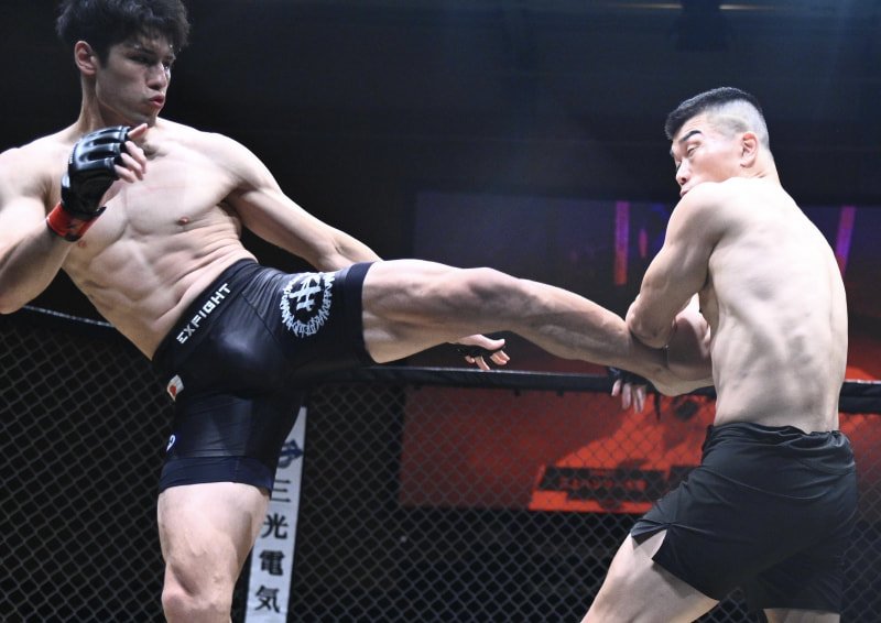 イム・ドンファン(右)にTKO勝ちした三上(左)
