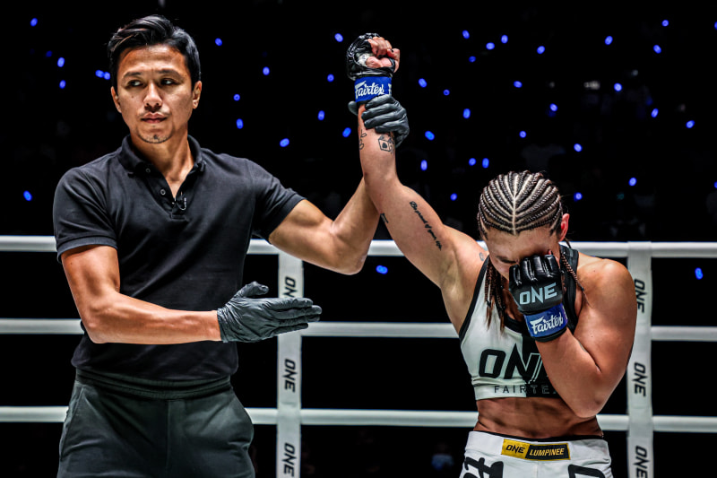 右手を上げられ号泣の平田©️ONE