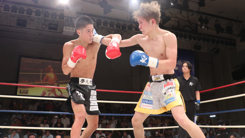 1Rに東は前後に入る動き。上遠野は距離を取って前蹴り、相手が飛び込んできたところに左を合わせる。だが東はクリンチ際で左をヒットしてパンチをまとめる。2Rは両者見合う場面が目立った。東は一気に距離を詰めてボディ打ちも、上遠野は強烈なローキック、フックも単発に。3Rは東のボディブロー。上遠野もアッパー、ボディブローが入る互角の展開。判定は1-1で延長へ。延長は東がボディ連打。上遠野は後半になると右でアゴを跳ね上げる。さらにボディ打ちを見せて優位に。判定3-0で上遠野が勝利した。