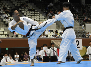 - 宮本神(左)が2連覇、ミドルキック出す@iko.kyokushinkaikan