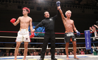 3R、竹添は蹴りとパンチのコンビネーションで攻めるも、倉田がボディ打ち、右ストレート、アッパーと怒涛のパンチ連打。竹添は耐えながらの蹴り、パンチを返す。倉田はパンチで押しまくる。判定は1(竹添)-0で引き分けとなり、延長ラウンドへ突入した。
