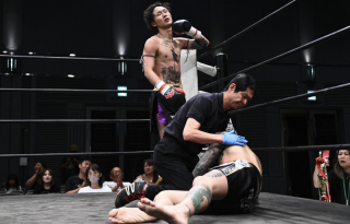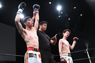 立ち上がる竹市は逆襲を仕掛けるが、耀織は後ろ蹴りを竹市のボディにクリーンヒット! 続けて耀織が右フックを豪快に叩きつけると、竹市は倒れたところでレフェリーがストップした。