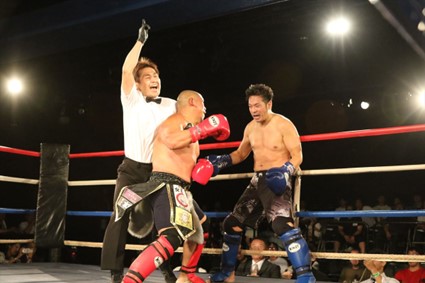 GARU(左)の右ストレートがヒットし、レフェリーはダウンを宣告