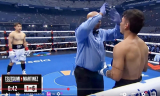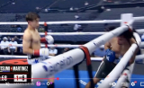 THE REFEREE STOPS THE FIGHT BETWEEN REITO TSUTSUMI AND JAVIER MARTINEZ IN THE FIRST ROUND.