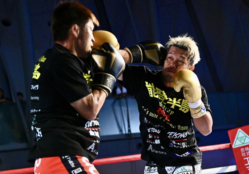激しく拳を交わした所(左)と皇治(右)