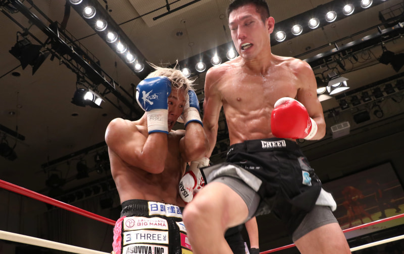 大谷(右)はヒザ蹴りで反撃