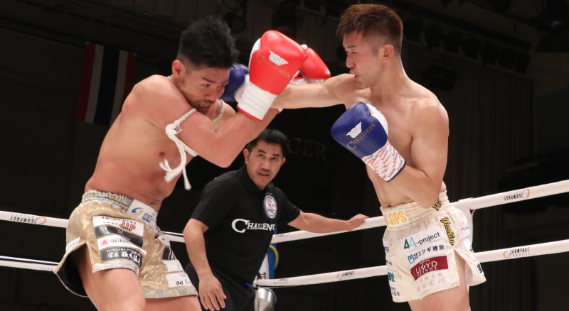 津崎の右が入りダウン寸前まで追い込んだ