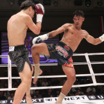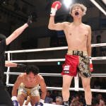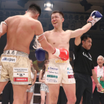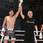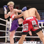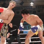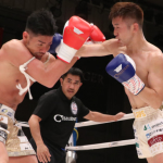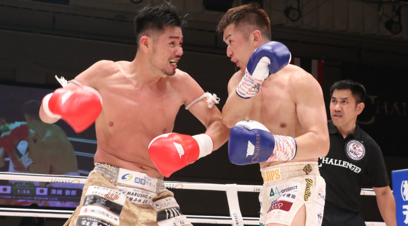 津崎(右)はこの試合で引退の匡志から判定勝利
