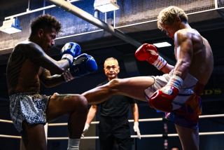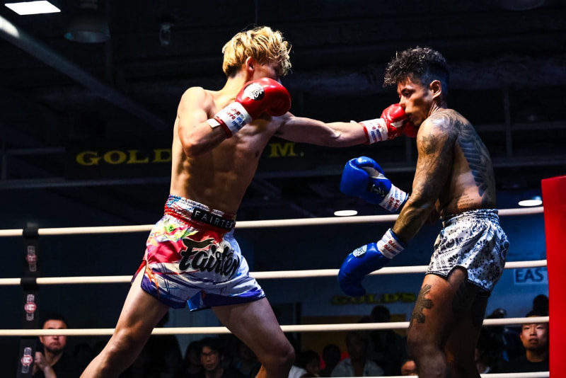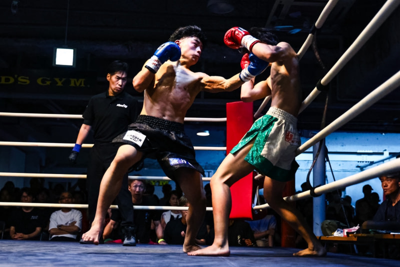 1R、178㎝の長身の太陽は強烈な右ロー。パンチ勝負のトミーケンはローも散らしていく。トミーケンはボディストレート、右ローでトミーケンを下がらせる。