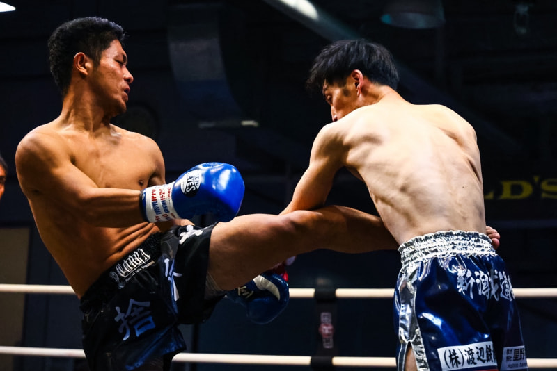 細野登弘(右)を1RTKOで下した小柳俊和(左)