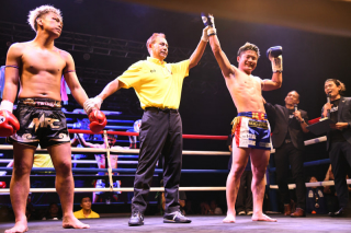 そして最終R、先に右ミドルを当てる中島だがそのままティーに組まれ体勢をコントロールされてしまう。逆にティーはサウスポー特有の遠い間合いからの左ミドルをヒットさせ印象が良い。余裕の出てきたティーは後ろ回し蹴りも見せ試合終了。判定は3-0でティーが勝利した。