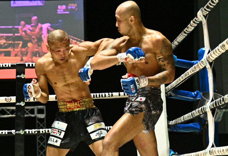 激しくヒジを交錯させた喜多村(左)とMIKE JOE(右)