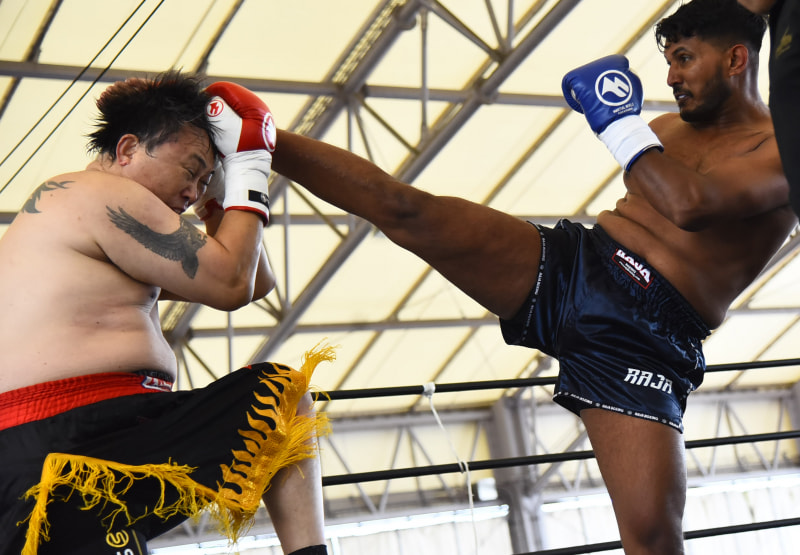 ベテランの庵谷“出美流漫”鷹志(左)から判定勝ちしたラッキー・ティマル(右)