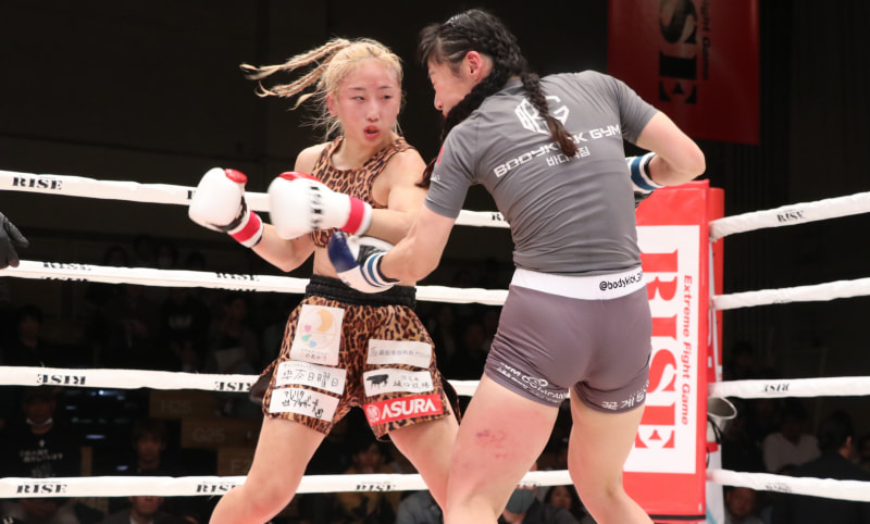 宮本(左)は体重超過のユナに判定勝ち