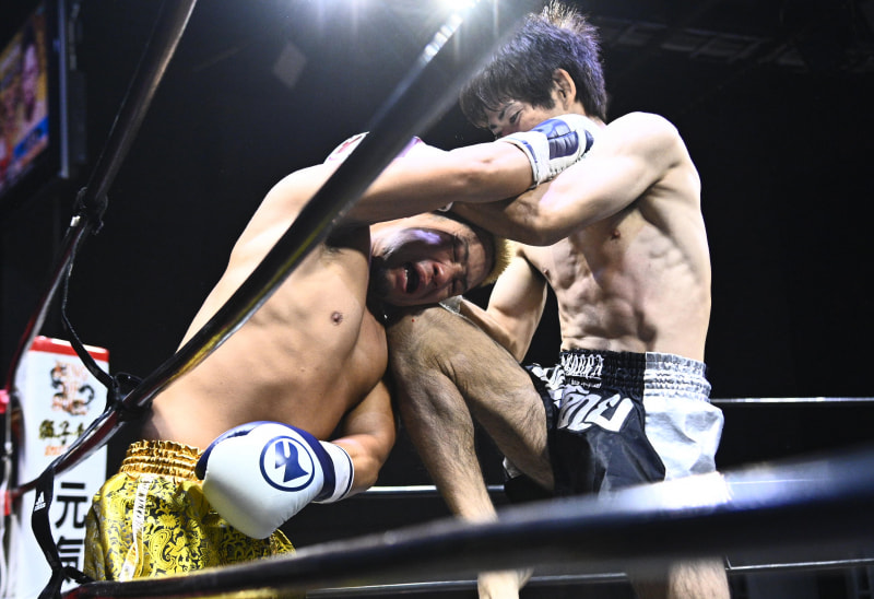 日進丸(左)からTKO勝ちした森本直哉(右)