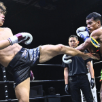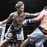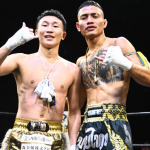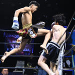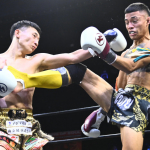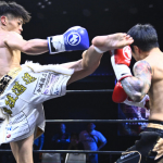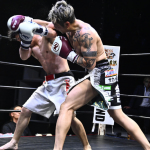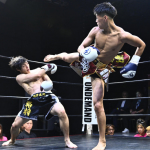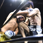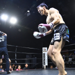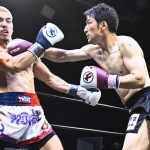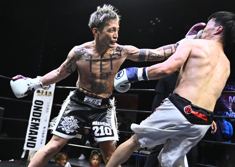 それからぼうがうち(右)から判定勝ちした藤川政弘(左)
