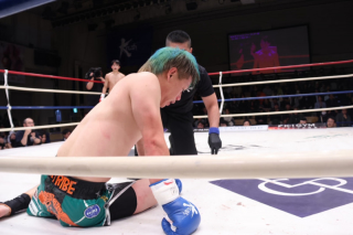 1Rから松山が左ミドル、カウンターの左右フックで攻める。2Rの序盤には、お互いのローキックの応酬。すると、松山が左ヒザ蹴りを誘い込むような形で斎藤の顔面へクリーンヒット!得意なヒザ蹴りでダウンを奪う。立ち上がろうとした斎藤だが、続行不可能に。