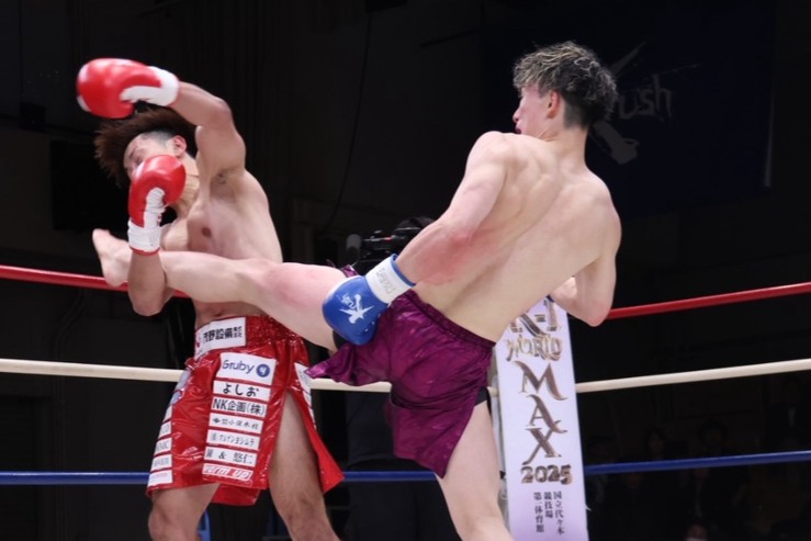 大石昌輝(右)が空手仕込みの蹴りで勝利