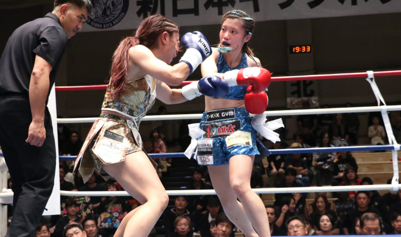 UvermiyU(右)が、AIKOを判定で下してミネルヴァ・ペーパー級王者に