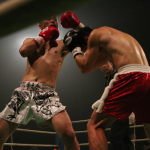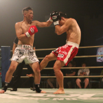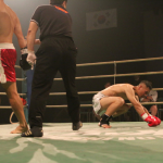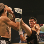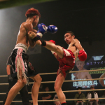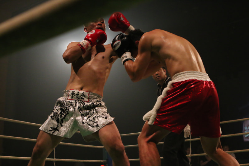 国崇がパンチを放つ