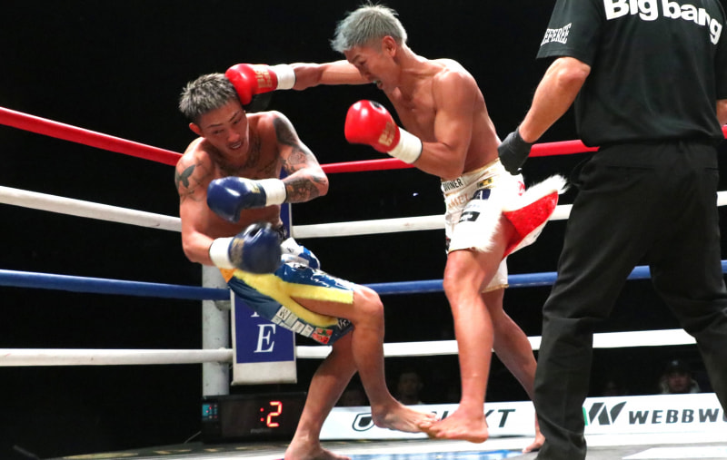 城戸がパンチで攻める