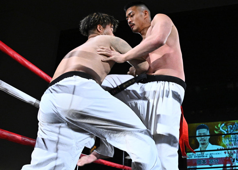 岡本京介(右)が近藤頼(左)から判定勝ち
