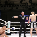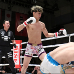 木村の右フックがヒット