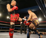 1R、ゴングと同時に前蹴り、左右ロー、ワンツーと攻撃が止まらないガラちゃん。エモリマンのカウンターの右ストレートがヒットするがガラちゃんの右ストレートもヒットし、エモリマンのアゴが上がる。