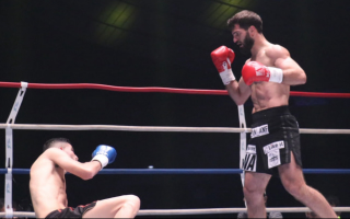 - 【写真&レポート】アカピャン、剛腕左フックで一撃KO勝ち!191cmの怪物が撃沈