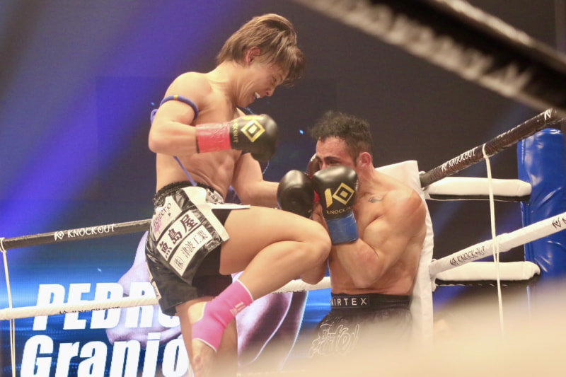 飛びヒザを見舞う
