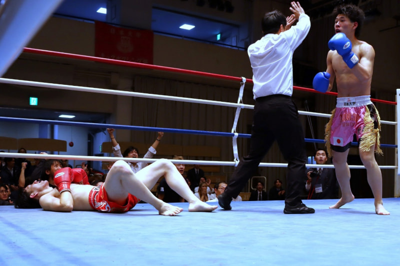 ダウンした平川は起き上がれず、レフェリーは試合を止めた