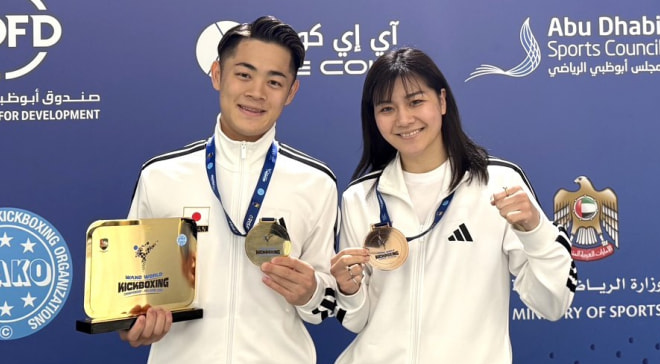 優勝した松本(左)と3位入賞を果たしたSAHO(C)K-1