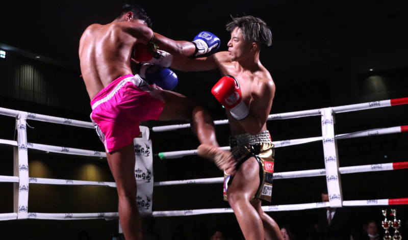 夢叶(右)はモンコンチャイからダウン2回を奪い勝利